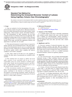 ASTM D4827-03(2022) - Standard Test Method for Determining the Unreacted Monomer Content of Latexes Using Capillary Column Gas Chromatography
