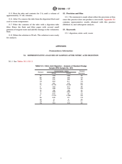 Note 1: This practice has been used successfully for oily sludges and a municipal digested sludge standard [Environmental Protection Agency (EPA) Sample No. 397]. The practice may be applicable to some elements not listed above, such as arsenic, barium, selenium, cobalt, magnesium, and calcium. Refractory elements such as silicon, silver, and titanium, as well as organo-mercury, are not solubilized by this practice.