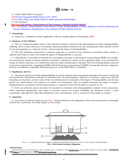 SIGNIFICANCE AND USE 5.1 The degree and rate of aerobic biodegradability of a plastic material in the environment determines the extent to which and time period over which plastic materials are mineralized by soil microorganisms. Disposal is becoming a major issue with the increasing use of plastics, and the results of this test method permit an estimation of the degree of biodegradability and the time period over which plastics will remain in an aerobic soil environment. This test method determines the degree of aerobic biodegradation by measuring evolved carbon dioxide as a function of time that the plastic is exposed to soil. 5.2 Soil is an extremely species-rich source of inoculum for evaluation of the biodegradability of plastics in the environment. When maintained appropriately with regard to moisture content and oxygen availability, the biological activity is quite considerable, although lower than other biologically active environments, such as activated sewage-sludge or compost. SCOPE 1.1 This test method covers determination under laboratory conditions of the degree and rate of aerobic biodegradation of plastic materials, including formulation additives, in contact with soil. 1.2 This test method is designed to measure the biodegradability of plastic materials relative to a reference material in an aerobic environment. 1.3 This test method is designed to be applicable to all plastic materials that are not inhibitory to the bacteria and fungi present in soil. 1.4 Claims of performance shall be limited to the numerical result obtained in the test and not be used for unqualified “biodegradable” claims. Reports shall clearly state the percentage of net gaseous carbon generation for both the test and reference samples at the completion of the test. Results shall not be extrapolated beyond the actual duration of the test. 1.5 The values stated in SI units are to be regarded as the standard. 1.6 This standard does not purport to address all of the safety concerns, if any, associated with its use. It is the responsibility of the user of this standard to establish appropriate safety, health, and environmental practices and determine the applicability of regulatory limitations prior to use. A specific hazard statement is given in Section 8. 1.7 This ASTM test method is equivalent to ISO 17556. 1.8 This international standard was developed in accordance with internationally recognized principles on standardization established in the Decision on Principles for the Development of International Standards, Guides and Recommendations issued by the World Trade Organization Technical Barriers to Trade (TBT) Committee.