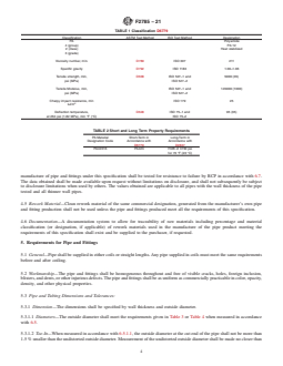 ABSTRACT This specification details the material and performance requirements, as well as the corresponding test methods, for the evaluation of polyamide 12 gas pressure pipes, tubing, and fittings that are intended for use in the distribution of natural gas in fuel gas mains and services for direct burial and reliner applications. It does not apply to threaded pipes. The pipes and fittings shall be made from virgin or reworked polyamide material that satisfies the short- and long-term hydrostatic design stress and hydrostatic design basis ratings, and rapid crack propagation (RCP) resistance properties. Properly sampled pipe and fitting specimens shall undergo test procedures and conform to the following requirements: workmanship; dimension (diameter, toe-in, wall thickness, wall thickness eccentricity range, ovality, and length); conditioning; slow crack growth resistance; resistance to RCP; minimum hydrostatic burst pressure/apparent tensile strength (quick burst); sustained pressure; outdoor storage stability; chemical resistance; elevated temperature service; butt fusion joints; butt heat fusion fittings; electrofusion fittings; mechanical fittings; transition fittings and anodeless risers; valves; and excess flow valves. SCOPE 1.1 This specification covers requirements and test methods for the characterization of polyamide 12 pipe, tubing, and fittings for use in fuel gas mains and services for direct burial and reliner applications. The pipe and fittings covered by this specification are intended for use in the distribution of natural gas. 1.1.1 Pipe and fittings covered by this specification shall not be joined using taper pipe threads. Butt fusion joining shall be done in accordance with Practice F3372. Design considerations are discussed in Appendix X1. In-plant quality control programs are specified in Annex A1. 1.2 The text of this specification references notes, footnotes, and appendixes which provide explanatory material. These notes and footnotes (excluding those in tables and figures) shall not be considered as requirements of the specification. 1.3 The values stated in inch-pound units are to be regarded as standard. The values given in parentheses are mathematical conversions to SI units that are provided for information only and are not considered standard. 1.4 This standard does not purport to address all of the safety concerns, if any, associated with its use. It is the responsibility of the user of this standard to establish appropriate safety, health, and environmental practices and determine the applicability of regulatory limitations prior to use. Note 1: Pipe and fittings utilizing heat fusion joining techniques produced from compounds meeting the requirements of Group 3, Class 2, and Grade 3 (PA323 or PA11) are intended for use with pipe manufactured from compounds meeting the requirements of Group 3, class 2 and Grade 3. Pipe and fittings utilizing heat fusion joining techniques produced from compounds meeting the requirements of Group 4, Class 2 and Grade 3 (PA 423 or PA12) are intended for use with pipe manufactured from compounds meeting the requirements of Group 4, Class 2 and Grade 3. As per the recommendations of the respective resin manufacturers, no cross fusion between PA 323 (PA11) and PA 423 (PA12) compounds is permitted. 1.5 This international standard was developed in accordance with internationally recognized principles on standardization established in the Decision on Principles for the Development of International Standards, Guides and Recommendations issued by the World Trade Organization Technical Barriers to Trade (TBT) Committee.