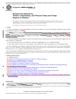 1.1 These test methods cover the determination of tensile and compressive creep and creep-rupture of plastics under specified environmental conditions (see 3.2).