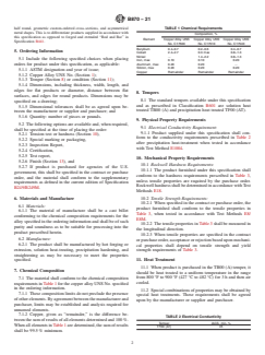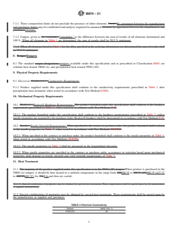 - Inspection and Testing: Details methods for verifying chemical composition, electrical conductivity, hardness, and mechanical properties, referencing standardized ASTM test procedures.