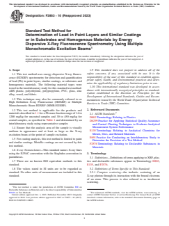 ASTM F2853-10(2023) - Standard Test Method for Determination of Lead in Paint Layers and Similar Coatings or in Substrates and Homogenous Materials by Energy Dispersive X-Ray Fluorescence Spectrometry Using Multiple Monochromatic Excitation Beams