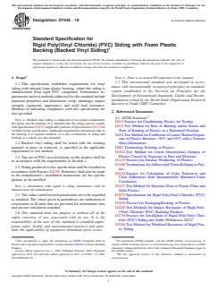 ASTM D7445-18 - Standard Specification for Rigid Poly(Vinyl Chloride) (PVC) Siding with Foam Plastic Backing (Backed Vinyl Siding)