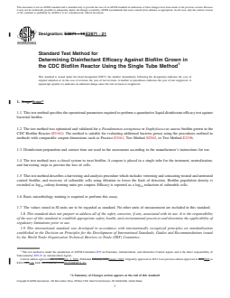 REDLINE ASTM E2871-21 - Standard Test Method for Determining Disinfectant Efficacy Against Biofilm Grown in the CDC Biofilm Reactor Using the Single Tube Method