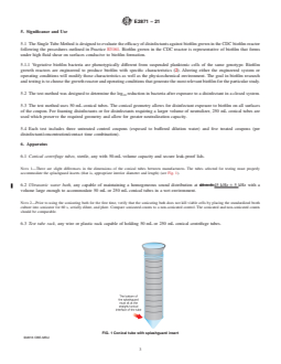 5.3 The test method uses 50 mL conical tubes. The conical geometry allows for disinfectant exposure to biofilm on all surfaces of the coupon. For foaming disinfectants or for disinfectants requiring a larger volume of neutralizer, 250 mL conical tubes are used which preserve the required geometry and allow for greater neutralization capacity.