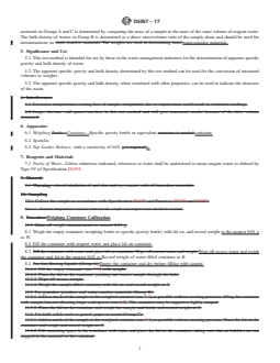 REDLINE ASTM D5057-17 - Standard Test Method for Screening Apparent Specific Gravity and Bulk Density of Waste