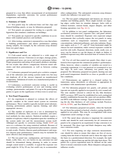 SIGNIFICANCE AND USE 5.1 Coil-coated metals are subjected to a wide range of environmental stresses. Corrosion at cut edges, damage points, and fabricated areas can occur and lead to premature failure. Proper preparation and rating of test panels produces meaningful test results that allows comparisons between metal substrates and their pretreatments as well as between coating systems. 5.2 Laboratory-prepared test panels give a relative comparison of the substrates and coating systems under test, but may not duplicate all of the stresses imposed on manufactured components. Validation of results on a manufactured product is recommended. 5.3 Laboratory accelerated corrosion testing is useful in evaluating relative performance of new and existing metal coatings, pretreatments, and paints. It is up to the participating parties to agree on the significance of these tests to actual use. SCOPE 1.1 This guide has been written specifically for coil-coated metal building products. 1.2 This guide applies to preparation, testing, and rating of line-coated and laboratory-coated test panels for the purpose of comparing and ranking the panels for corrosion resistance and other related properties. 1.3 Testing may include accelerated laboratory corrosion tests and outdoor exposure tests. 1.4 The values stated in SI units are to be regarded as standard. No other units of measurement are included in this standard. 1.5 This standard does not purport to address all of the safety concerns, if any, associated with its use. It is the responsibility of the user of this standard to establish appropriate safety, health, and environmental practices and determine the applicability of regulatory limitations prior to use. 1.6 This international standard was developed in accordance with internationally recognized principles on standardization established in the Decision on Principles for the Development of International Standards, Guides and Recommendations issued by the World Trade Organization Technical Barriers to Trade (TBT) Committee.