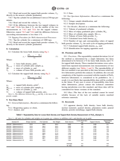 5.4 The data from the tapped bulk density test can be used to estimate the needed volume of small containers holding a fixed mass of powder that has been compacted.