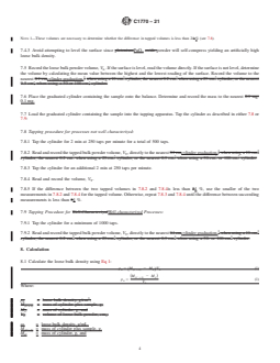 volume is then measured. This process is repeated for cycles of 2 min until the difference in tapped volumes is less than 2 %. 4