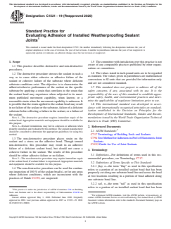 ASTM C1521-19(2020) - Standard Practice for Evaluating Adhesion of Installed Weatherproofing Sealant Joints