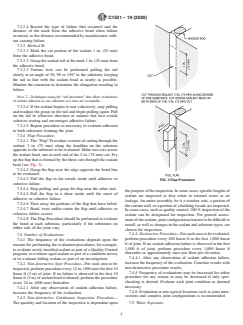 SIGNIFICANCE AND USE 4.1 Many parameters contribute to the overall performance of a sealant application. Some of the most significant parameters are sealant bead size and configuration, joint movement, quality of workmanship, the quality of the adhesive bond, and the quality of the sealant material. 4.2 A sealant usually fails to perform as a weatherseal when it experiences cohesive or adhesive failure. 4.3 If a sealant bead fails, an evaluation of the total joint movement may be needed to determine if the joint sealant was strained beyond its intended design, or if the sealant failed within the design parameters. 4.4 If a sealant bead fails adhesively, there is no straightforward procedure for determining the cause. The adhesive failure may be due to workmanship, the specific surface preparation used, the specific sealant used, poor “installed” joint design, poor bond chemistry and other causes. 4.5 Because of the complex nature of the performance of a sealant bead, an understanding of the quality of the adhesive bond is instrumental in any evaluation of sealant performance. It is critical that the evaluation procedures used truly evaluate the quality of the adhesive bond and do not simply take advantage of the tear resistance of the sealant. 4.6 This method does not evaluate the performance of a sealant bead as a weatherseal. It only evaluates the characteristics of the adhesive bond relative to the cohesive strength of the sealant in a particular installation. Since any failures that result from use of these procedures are intentionally induced, they do not necessarily mean that the sealant bead will not perform as a weatherseal. 4.7 The results of these methods are most useful in identifying sealant beads with poor adhesion. The continuous inspection procedure is also useful in the identification of places of poor joint configuration. Obvious cohesive failures are also identified. The results of these methods can be used to assess the likely performance of the seal... SCOPE 1.1 This practice describes destructive and non-destructive procedures. 1.2 The destructive procedure stresses the sealant in such a way as to cause either cohesive or adhesive failure of the sealant or cohesive failure of the substrate where deficient substrate conditions exist. The objective is to characterize the adhesive/cohesive performance of the sealant on the specific substrate by applying a strain that correlates to the strain that the sealant bead may experience when subjected to its maximum published movement capability, when known; or a reasonable strain when the movement capability is unknown. It is possible that the strain applied to the sealant bead may result in no failure of the sealant or the substrate, failure of a deficient substrate before effecting a failure in the sealant, or a failure of the sealant. Note 1: The destructive procedure requires immediate repair of the sealant bead. Appropriate materials and equipment should be available for this purpose. Note 2: Sealant formulations may fail in cohesion or adhesion when properly installed, and evaluated by this method. The sealant manufacturer should be consulted to determine the appropriate guidelines for using this method. 1.3 The non-destructive procedure places strain on the sealant and a stress on the adhesive bond. Though termed non-destructive, this procedure may result in an adhesive failure of a deficient sealant bead, but should not cause a cohesive failure in the sealant. The results of this procedure should be either adhesive failure or no failure. Note 3: The non-destructive procedure may require immediate repair of the sealant bead, if sealant failure is experienced. Appropriate materials and equipment should be available for this purpose. 1.4 The non-destructive procedure can be used for continuous inspection of 100 % of the sealant bead(s), or for any areas where deficient conditions, which are inconsistent with the pr...