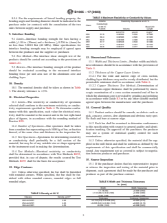 - Testing Procedures: Outlines methods for tension and bend testing (ASTM E8/E8M, E290), resistivity measurement (ASTM B193), and interface shear strength.