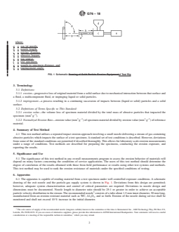 - Data Reporting and Analysis: Instructions are given for recording test conditions, measuring mass loss, calculating erosion rates, and reporting normalized values relative to reference specimens for interlaboratory consistency.