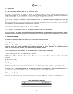 Keywords: ASTM C212-22, structural clay facing tile, masonry walls, building partitions, compressive strength, water absorption, ASTM masonry standards, exterior facing tile, special duty tile, building materials standards.