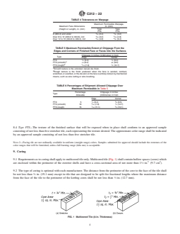 ASTM C212-22 is a technical specification published by ASTM International. Its full title is "Standard Specification for Structural Clay Facing Tile". This standard covers: ABSTRACT This specification covers structural clay load-bearing facing tile. Structural facing tile are tile designed for use in interior and exterior unplastered walls and partitions of buildings. Two classes of structural clay facing tile are covered: standard - tile suitable for general use in exterior or interior masonry walls and partitions, and special duty - tile suitable for general use in exterior or interior masonry walls and partitions, and designed to have superior resistance to impact and moisture transmission and to support greater lateral and compressive loads than standard tile construction. Two types of structural clay facing tile are covered: type FTX - smooth-face tile suitable for general use in exposed exterior and interior masonry walls and partitions, and type FTS - smooth- or rough texture face tile suitable for general use in exposed exterior and interior masonry walls and partitions. The tile shall conform to one of the requirements for water absorption of the type specified as prescribed. The tile shall conform to the requirements for compressive strength of the class specified as prescribed. The tile shall be of the sizes and shapes specified. Requirements as to coring shall apply to multicored tile only. The compressive strength and absorption by 1-h boiling shall be tested to meet the requirements prescribed. SCOPE 1.1 This specification covers structural clay loadbearing facing tile. Structural facing tile are tile designed for use in interior and exterior unplastered walls and partitions of buildings. 1.2 The property requirements of this specification apply at the time of purchase. The use of results from testing of tile extracted from masonry structures for determining conformance or nonconformance to the property requirements (Section 6) of this standard is beyond the scope of this specification. 1.3 Tile covered by this specification are manufactured from clay, shale, or similar naturally occurring substances and subjected to a heat treatment at elevated temperatures (firing). The heat treatment must develop sufficient fired bond between the particulate constituents to provide the strength and durability requirements of this specification. (See firing and fired bond in Terminology C1232.) 1.4 The text of this specification references notes and footnotes which provide explanatory material. These notes and footnotes (excluding those in tables and figures) shall not be considered as requirements of the specification. 1.5 The values stated in inch-pound units are to be regarded as standard. The values given in parentheses are mathematical conversions to SI units that are provided for information only and are not considered standard. 1.6 This international standard was developed in accordance with internationally recognized principles on standardization established in the Decision on Principles for the Development of International Standards, Guides and Recommendations issued by the World Trade Organization Technical Barriers to Trade (TBT) Committee.