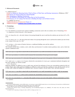 Defines ventilation requirements and reference values critical for interpreting results from ASTM E741-23.ASTM E631: Terminology of Building Constructions