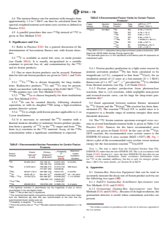 5.3 One or more fission products can be assayed. Pertinent data for relevant fission products are given in Table 1 and Table 2.