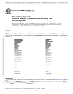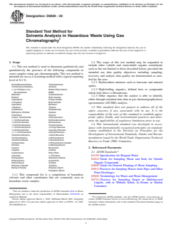 Standard Test Method for Solvents Analysis in Hazardous Waste Using Gas Chromatography