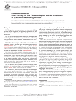 The ASTM D6914/D6914M-16(2024) Standard Practice for Sonic Drilling provides comprehensive guidance on leveraging the advantages of sonic drilling for efficient, accurate site characterization and the installation of subsurface monitoring devices. It reflects current industry best practices, emphasizing productivity, environmental stewardship, and adaptability to complex site conditions. Professionals engaging in geotechnical and environmental projects benefit from implementing this standard, supported by its alignment with related ASTM standards for site investigation and monitoring.