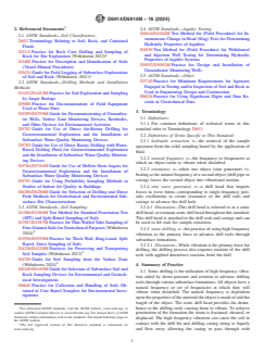 ASTM D6914/D6914M-16(2024) is a standard published by ASTM International. Its full title is "Standard Practice for Sonic Drilling for Site Characterization and the Installation of Subsurface Monitoring Devices". This standard covers: SIGNIFICANCE AND USE 5.1 Sonic drilling is a rapid, primarily dry drilling method (see 5.2), used both in geotechnical applications to avoid hydraulic fracturing, and in environmental site exploration. Geotechnical applications include exploration for tunnels, underground excavations, and installation of instrumentation or structural elements. Sonic drilling methods are used in rocky soils with large diameter casing to obtain continuous samples in materials that are difficult to sample using other methods. It is well suited for projects of a production-orientated nature with a drilling rate faster than most all other drilling methods (Guide D6286/D6286M). Sonic drilling is used for environmental explorations because sonic drilling offers the benefit of significantly reduced drill cuttings, a major cost element, and reduced drill fluid use and production. Sonic drilling offers rapid formation penetration thereby increasing production. It can reduce fieldwork time generating overall project cost reductions. The continuous core sample recovered provides a representative lithological column for review and analysis. Sonic drilling readily lends itself to environmental instrumentation installation and to in-situ testing. The advantage of a clean cased hole without the use of drilling fluids provides for increased efficiency in instrumentation installation. The ability to cause vibration to the casing string eliminates the complication of monitoring well backfill bridging common to other drilling methods and reduces the risk of casing lockup allowing for easy casing withdrawal during grouting. The clean borehole reduces well development time. Pumping tests can be performed as needed prior to well screen placement to allow for proper screen location. The sonic method is readily utilized in multiple cased well applications which are required to prevent aquifer cross contamination. The installation of inclinometers, vibrating wire piezometers, settlement gauges, and the like can be accomplished e... SCOPE 1.1 This practice covers procedures for using sonic drilling methods in the conducting of subsurface exploration for site characterization and in the installation of subsurface monitoring devices. 1.2 The use of the sonic drilling method for exploration and monitoring-device installation may often involve preliminary site research and safety planning, administration, and documentation. 1.3 Soil or Rock samples collected by sonic methods are classed as group A or group B in accordance with Practices D4220/D4220M. Other sampling methods (Guide D6169/D6169M) may be used in conjunction with the sonic method to collect samples classed as group C and Group D. Other drilling methods are summarized in Guide D6286/D6286M. 1.4 Units—The values stated in either inch-pound units or SI units [presented in brackets] are to be regarded separately as standard. The values stated in each system may not be exact equivalents; therefore, each system shall be used independently of the other. Combining values from the two systems may result in non-conformance with the standard. Reporting of test results in units other than in-pound shall not be regarded as nonconformance with this practice. 1.5 All observed and calculated values shall conform to the guidelines for significant digits and rounding established in Practice D6026, unless superseded by this standard. 1.6 This practice offers a set of instructions for performing one or more specific operations. It is a description of the present state-of-the-art practice of sonic drilling. It does not recommend this method as a specific course of action. This document cannot replace education or experience and should be used in conjunction with professional judgment. Not all aspects of this practice may be applicable in all circumstances. This ASTM standard is not intended to represent or replace the standard of care by which the adequacy of a given professional service must be judged,...
