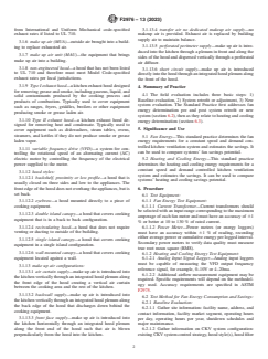 ASTM F2976-13(2023) is a standard published by ASTM International. Its full title is "Standard Practice for Determining the Field Performance of Commercial Kitchen Demand Control Ventilation Systems". This standard covers: SIGNIFICANCE AND USE 5.1 Fan Energy—This standard practice determines the fan energy requirements for a constant speed and demand controlled kitchen ventilation system and estimates the savings. It can be used to compare systems' fan savings potential. 5.2 Heating and Cooling Energy—This standard practice determines the heating and cooling energy requirements for a constant speed and demand controlled kitchen ventilation system and estimates the savings. It can be used to compare systems' heating and cooling savings potential. SCOPE 1.1 This practice determines the energy savings potential of Commercial Kitchen Demand Control Ventilation (CKDCV) systems by outlining a procedure to measure system performance. 1.1.1 Fan energy savings potential of a Commercial Kitchen Demand Control Ventilation system will be determined. 1.1.2 Thermal energy savings potential of a Commercial Kitchen Demand Control Ventilation system will be determined. 1.2 This Standard Practice applies to commercial kitchen exhaust and supply demand control ventilation system in the following foodservice establishments: Casino hotel foodservice facilities, commercial cafeterias, full service restaurant, hotel foodservice facility, quick service restaurant, school cafeteria, supermarket, health care foodservice facility. See Appendix X1 for descriptions of facilities. 1.3 This CKDCV field test protocol does not apply to other demand control ventilation applications such as building heating, ventilation, and air-conditioning (HVAC) applications or laboratory applications. 1.4 Units—The values stated in inch-pound units are to be regarded as standard. The values given in parentheses are mathematical conversions to SI units that are provided for information only and are not considered standard. 1.5 This standard does not purport to address all of the safety concerns, if any, associated with its use. It is the responsibility of the user of this standard to establish appropriate safety, health, and environmental practices and determine the applicability of regulatory limitations prior to use. 1.6 This international standard was developed in accordance with internationally recognized principles on standardization established in the Decision on Principles for the Development of International Standards, Guides and Recommendations issued by the World Trade Organization Technical Barriers to Trade (TBT) Committee.