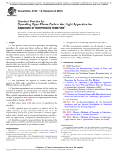 ASTM G152-13(2021) - Standard Practice for Operating Open Flame Carbon Arc Light Apparatus for Exposure of Nonmetallic Materials