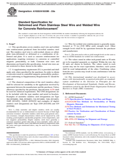 ASTM A1022/A1022M-22a is a standard specification published by ASTM International for deformed and plain stainless steel wire and welded wire used in concrete reinforcement. This specification addresses both plain and deformed wire products manufactured from hot-rolled stainless steel rod, designed for applications where corrosion resistance and controlled magnetic permeability are essential. The standard outlines both inch-pound and SI units and provides key requirements for material selection, mechanical performance, dimensional tolerances, and product identification.