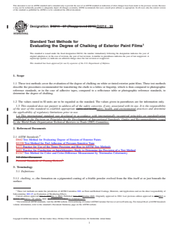 REDLINE ASTM D4214-23 - Standard Test Methods for Evaluating the Degree of Chalking of Exterior Paint Films