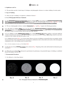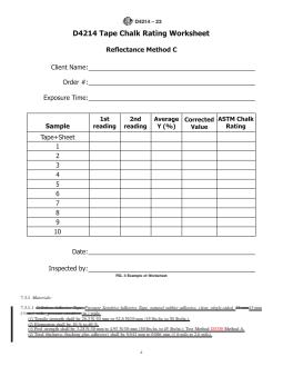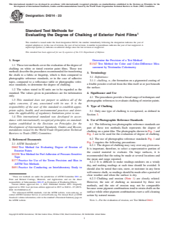 Keywords: ASTM D4214-23, chalking, evaluation, exterior paint films, paint testing standard, coatings, weathering, photographic reference, reflectance measurement.