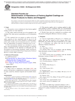 ASTM D3023-98(2024) - Standard Practice for Determination of Resistance of Factory-Applied Coatings on Wood Products to Stains and Reagents