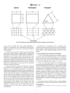 1.2 For purposes of calculating detection probabilities, hot spots or buried contaminants are presumed to be elliptically shaped when projected vertically to the ground surface, and search patterns are square, rectangular, or rhombic. Assumptions about the size and shape of suspected hot spots are the primary limitations of this practice, and must be judged by historical information. A further limitation is that hot spot boundaries are usually not clear and distinct.