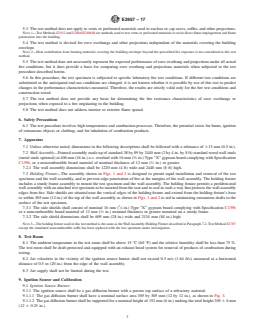 5.1 The test method described herein monitors the fire characteristics and the ability of eave overhangs and other projections to resist exterior fire penetration from underneath under the specified fire exposure conditions.