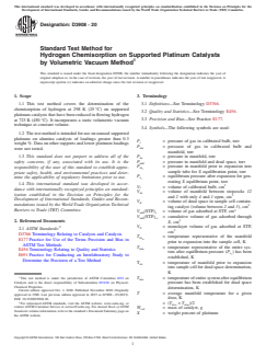 ASTM D3908-20 - Standard Test Method for Hydrogen Chemisorption on Supported Platinum Catalysts by Volumetric Vacuum Method