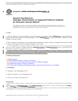 1.1 This test method covers the determination of the chemisorption of hydrogen at 298 K (25°C)(25 °C) on supported platinum
