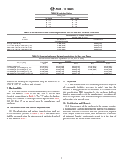 ABSTRACT This specification covers standards for carburizing steels to be used in anti-friction bearings. Materials shall conform to carbon, manganese, phosphorus, sulfur, chromium, nickel, molybdenum, copper, oxygen, and aluminum contents. Materials shall adhere to inclusion ratings set for thin and heavy series. Grain size and hardenability requirements shall be followed. Decarburization and surface imperfections of hot-rolled, cold-finished, or annealed bars and tubes shall not exceed specified limits as measured through microscopical methods. SCOPE 1.1 This specification covers the requirements for carburizing bearing-quality steel to be used in the manufacture of anti-friction bearings. 1.2 Supplementary requirements of an optional nature are provided and when desired shall be so stated in the order. 1.3 The values stated in inch-pound units are to be regarded as standard. The values given in parentheses are mathematical conversions to SI units that are provided for information only and are not considered standard. 1.4 This international standard was developed in accordance with internationally recognized principles on standardization established in the Decision on Principles for the Development of International Standards, Guides and Recommendations issued by the World Trade Organization Technical Barriers to Trade (TBT) Committee.