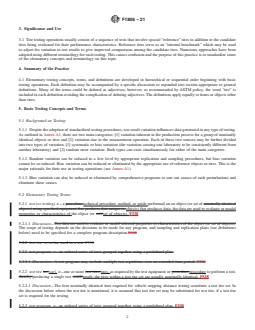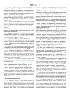 The standard emphasizes the importance of reproducible testing, outlining repeatability (within-laboratory/test site precision) and reproducibility (between-laboratory/site precision) in line with ASTM practices. It incorporates procedures for evaluating test variability using recognized statistical principles.