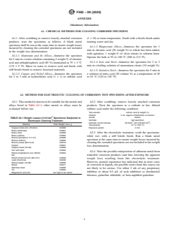 - Test Methods: Includes procedures for specimen preparation, conditioning, immersion testing, weight change measurements, and visual inspection for corrosion.
