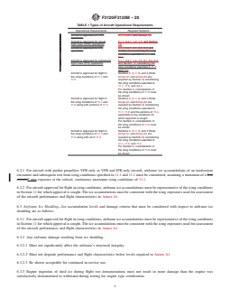 The standards cover: types of aircraft operational requirements; crew external visibility (windshields and windows); ice shedding (engine inlet ice ingestion, propeller ice shedding, airframe ice shedding, ice protection system failure considerations); engine installation and induction system ice protection (propellers, turbine engines in flight, turbine engines on ground).