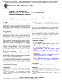 ASTM D2765-16(2024) - Standard Test Methods for Determination of Gel Content and Swell Ratio of Crosslinked Ethylene Plastics