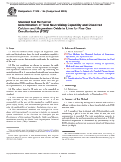 ASTM C1318-15a(2020) - Standard Test Method for Determination of Total Neutralizing Capability and Dissolved Calcium and Magnesium Oxide in Lime for Flue Gas Desulfurization (FGD)