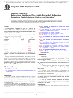 ASTM D4209-07(2019) - Standard Practice for Determining Volatile and Nonvolatile Content of Cellulosics, Emulsions, Resin Solutions, Shellac, and Varnishes provides a comprehensive guide for professionals in the coatings and chemical industries. This practice serves as a reference for selecting the appropriate ASTM test methods to determine the volatile and nonvolatile (solids) content in a range of materials commonly used in paints, coatings, and related formulations. Accurate determination of volatile and nonvolatile content is critical for manufacturers, formulators, and users to assess solids available for film formation and estimate volatile organic content, impacting both product performance and regulatory compliance.