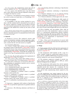 - Outlines manufacturing methods, including concrete mixing, forming, and curing processes.