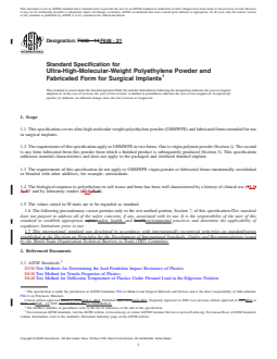 REDLINE ASTM F648-21 - Standard Specification for Ultra-High-Molecular-Weight Polyethylene Powder and Fabricated Form for Surgical Implants