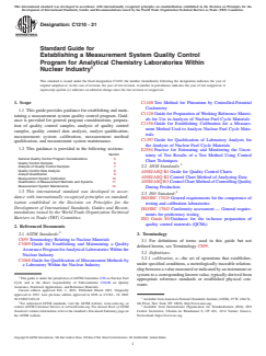 ASTM C1210-21 - Standard Guide for Establishing a Measurement System Quality Control Program for Analytical Chemistry Laboratories Within Nuclear Industry