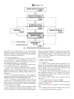 SIGNIFICANCE AND USE 4.1 A laboratory quality assurance program is an essential program for laboratories within the nuclear industry. Guide C1009 provides guidance for establishing a quality assurance program for an analytical laboratory within the nuclear industry. This guide deals with the control of measurements aspect of the laboratory quality assurance program. Fig. 1 shows the relationship of measurement control with other essential aspects of a laboratory quality assurance program. FIG. 1 Quality Assurance of Analytical Laboratory Data 4.2 The fundamental purposes of a measurement control program are to provide the with-use assurance (real-time control) that a measurement system is performing satisfactorily and to provide the data necessary to quantify measurement system performance. The with-use assurance is usually provided through the satisfactory analysis of quality control samples (reference value either known or unknown to the analyst). The data necessary to quantify measurement system performance is usually provided through the analysis of quality control samples or the duplicate analysis of process samples, or both. In addition to the analyses of quality control samples, the laboratory quality control program should address (1) the preparation and verification of standards and reagents, (2) data analysis procedures and documentation, (3) calibration and calibration procedures, (4) measurement method qualification, (5) analyst qualification, and (6) other general program considerations. Other elements of laboratory quality assurance also impact the laboratory quality control program. These elements or requirements include (1) chemical analysis procedures and procedure control, (2) records storage and retrieval requirements, (3) internal audit requirements, (4) organizational considerations, and (5) training/qualification requirements. To the extent possible, this standard will deal primarily with quality control requirements rather than overall quality assurance re... SCOPE 1.1 This guide provides guidance for establishing and maintaining a measurement system quality control program. Guidance is provided for general program considerations, preparation of quality control samples, analysis of quality control samples, quality control data analysis, analyst qualification, measurement system calibration, measurement method qualification, and measurement system maintenance. 1.2 This guidance is provided in the following sections: Section General Quality Control Program Considerations 5 Quality Control Samples 6 Analysis of Quality Control Samples 7 Quality Control Data Analysis 8 Analyst Qualification 9 Measurement System Calibration 10 Qualification of Measurement Methods and Systems 11 Measurement System Maintenance 12 1.3 This international standard was developed in accordance with internationally recognized principles on standardization established in the Decision on Principles for the Development of International Standards, Guides and Recommendations issued by the World Trade Organization Technical Barriers to Trade (TBT) Committee.