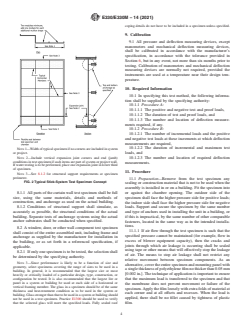 SIGNIFICANCE AND USE 5.1 This test method is a standard procedure for determining structural performance under uniform static air pressure difference. This typically is intended to represent the effects of a wind load on exterior building surface elements. The actual loading on building surfaces is quite complex, varying with wind direction, time, height above ground, building shape, terrain, surrounding structures, and other factors. The resistance of many windows, curtain walls, and door assemblies to wind loading is also complex and depends on the complete history of load, magnitude, duration, and repetition. These factors are discussed in ASCE/SEI 7 and in the literature (1-8).5 5.2 Design wind velocities are selected for particular geographic locations and probabilities of occurrence based on data from wind velocity maps such as are provided in ASCE/SEI 7. These wind velocities are translated into uniform static air pressure differences and durations acting inward and outward. Complexities of wind pressures, as related to building design, wind intensity versus duration, frequency of occurrence, and other factors must be considered. Superimposed on sustained winds are gusting winds which, for short periods of time from a fraction of a second to a few seconds, are capable of moving at considerably higher velocities than the sustained winds. The analytical procedures in ASCE/SEI 7, wind tunnel studies, computer simulations, and model analyses are helpful in determining the appropriate design wind loads on exterior surface elements of buildings. Generally, wind load durations obtained from ASCE/SEI 7 are 2 s to 10 s and are dependent upon the specific time reference employed in determining the pressure coefficients. 5.3 Some materials have strength or deflection characteristics that are time dependent. Therefore, the duration of the applied test load may have a significant impact on the performance of materials used in the test specimen. The most common examples of materials with... SCOPE 1.1 This test method describes the determination of the structural performance of exterior windows, doors, skylights, and curtain walls under uniform static air pressure differences, using a test chamber. This test method is applicable to curtain wall assemblies including, but not limited to, metal, glass, masonry, and stone components.2 1.2 This test method is intended only for evaluating the structural performance associated with the specified test specimen and not the structural performance of adjacent construction. 1.3 The proper use of this test method requires a knowledge of the principles of pressure and deflection measurement. 1.4 This test method describes the apparatus and the procedure to be used for applying uniformly distributed test loads to a specimen. 1.4.1 Procedure A (see 11.2) shall be used when a load-deflection curve is not required. 1.4.2 Procedure B (see 11.3) shall be used when a load-deflection curve is required. 1.5 The text of this standard references notes and footnotes which provide explanatory materials. These notes and footnotes (excluding those in tables and figures) shall not be considered as requirements of the standard. 1.6 The values stated in either SI units or inch-pound units are to be regarded separately as standard. The values stated in each system are not necessarily exact equivalents; therefore, to ensure conformance with the standard, each system shall be used independently of the other, and values from the two systems shall not be combined. 1.7 This standard does not purport to address all of the safety concerns, if any, associated with its use. It is the responsibility of the user of this standard to establish appropriate safety, health, and environmental practices and determine the applicability of regulatory limitations prior to use. For specific hazard statements, see Section 7. 1.8 This international standard was developed in accordance with int...