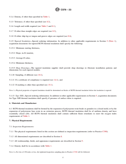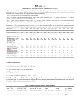 - Marking and Identification: Outlines labeling requirements, including specification number, type, manufacturer, and R-value or k-Factor as appropriate.