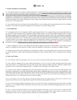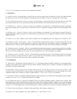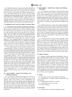- Static Load Testing: The standard defines methods for applying static loads to stand components, including foot platforms, seats, steps, and upper sections, ensuring they meet minimum structural requirements and safety standards.