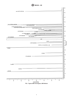 ASTM D6144-22 is a standard published by ASTM International. Its full title is "Standard Test Method for Analysis of AMS (α-Methylstyrene) by Capillary Gas Chromatography". This standard covers: SIGNIFICANCE AND USE 5.1 This test method is suitable for setting specifications on the materials referenced in 1.2 and for use as an internal quality control tool where AMS is produced or is used in a manufacturing process. It may also be used in development or research work involving AMS. 5.2 This test method is useful in determining the purity of AMS with normal impurities present. If extremely high boiling or unusual impurities are present in the AMS, this test method would not necessarily detect them and the purity calculation would be erroneous. SCOPE 1.1 This test method covers the determination of the purity of AMS (α-methylstyrene) by gas chromatography. Calibration of the gas chromatography system is done by the external standard calibration technique. 1.2 This test method has been found applicable to the measurement of impurities such as cumene, 3-methyl-2-cyclopentene-1-one, n-propylbenzene, tert-butylbenzene, sec-butylbenzene, cis-2-phenyl-2-butene, acetophenone, 1-phenyl-1-butene, 2-phenyl-2-propanol, trans-2-phenyl-2-butene, m-cymene, p-cymene, and phenol, which are common to the manufacturing process of AMS. The method has also been found applicable for the determination of para-tertiary-butylcatechol (TBC or PTBC) typically added as a stabilizer to AMS. The impurities in AMS can be analyzed over a range of 5 to 800 mg/kg by this method. (See Table 2.) Based on the results in ASTM Research Report RR:D16-1022, summarized in Table 2, the limit of quantitation for these impurities averages 4 mg/kg, while the limit of detection averages 1.2 mg/kg. 1.3 In determining the conformance of the test results using this method to applicable specifications, results shall be rounded off in accordance with the rounding-off method of Practice E29. 1.4 The values stated in SI units are to be regarded as standard. No other units of measurement are included in this standard. 1.5 This standard does not purport to address all the safety concerns, if any, associated with its use. It is the responsibility of the user of this standard to establish appropriate safety, health, and environmental practices and determine the applicability of regulatory limitations prior to use. For specific hazard statements, see Section 8. 1.6 This international standard was developed in accordance with internationally recognized principles on standardization established in the Decision on Principles for the Development of International Standards, Guides and Recommendations issued by the World Trade Organization Technical Barriers to Trade (TBT) Committee.